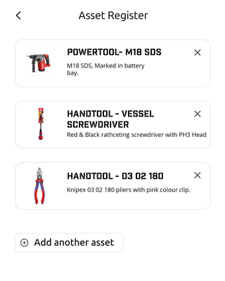 You can assign an Asset Register to each bag & keep track of what tool is where. Your Asset Register can be exported should your bag go missing or be stolen & provided to the Police to help identify your tools when recovered.