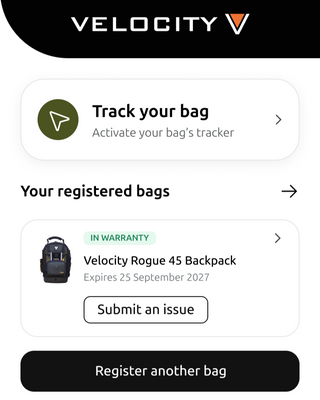 Select Velocity bags come with a 3-Year warranty. Extendable to 5-Years via the app at no charge